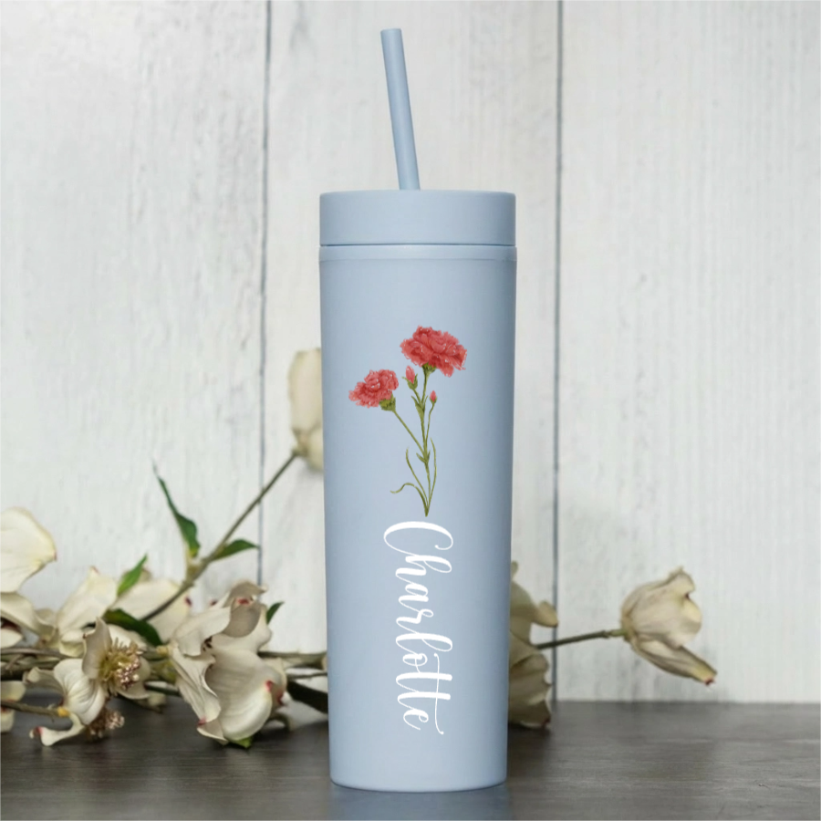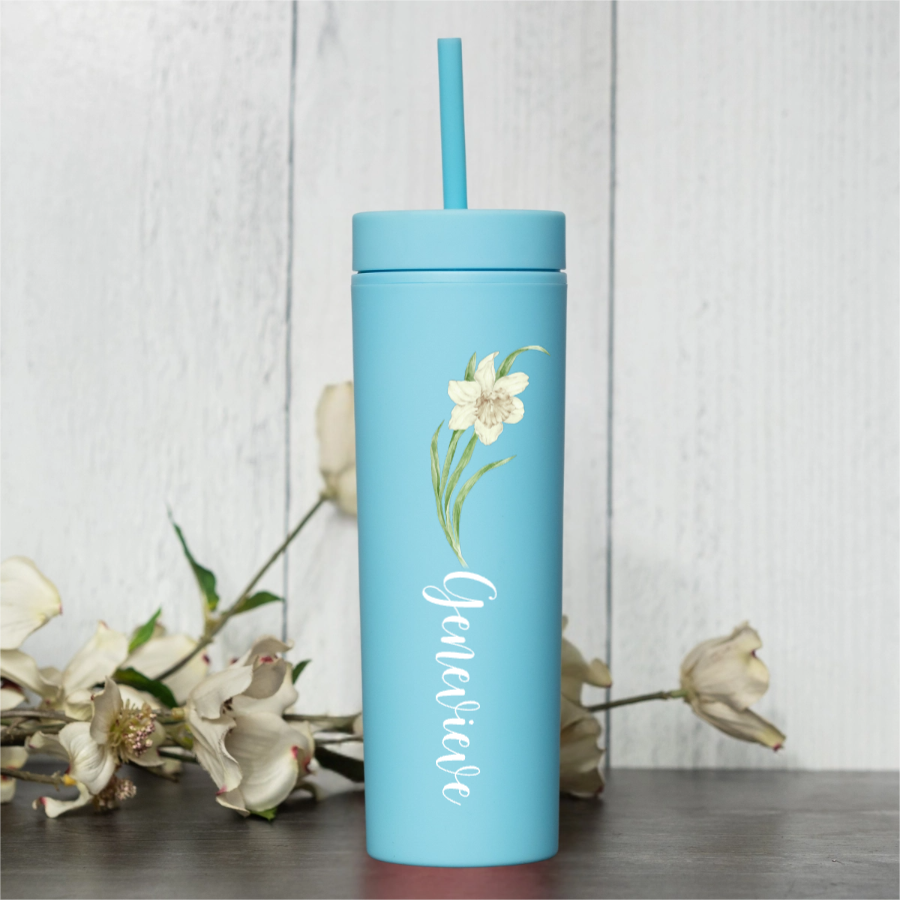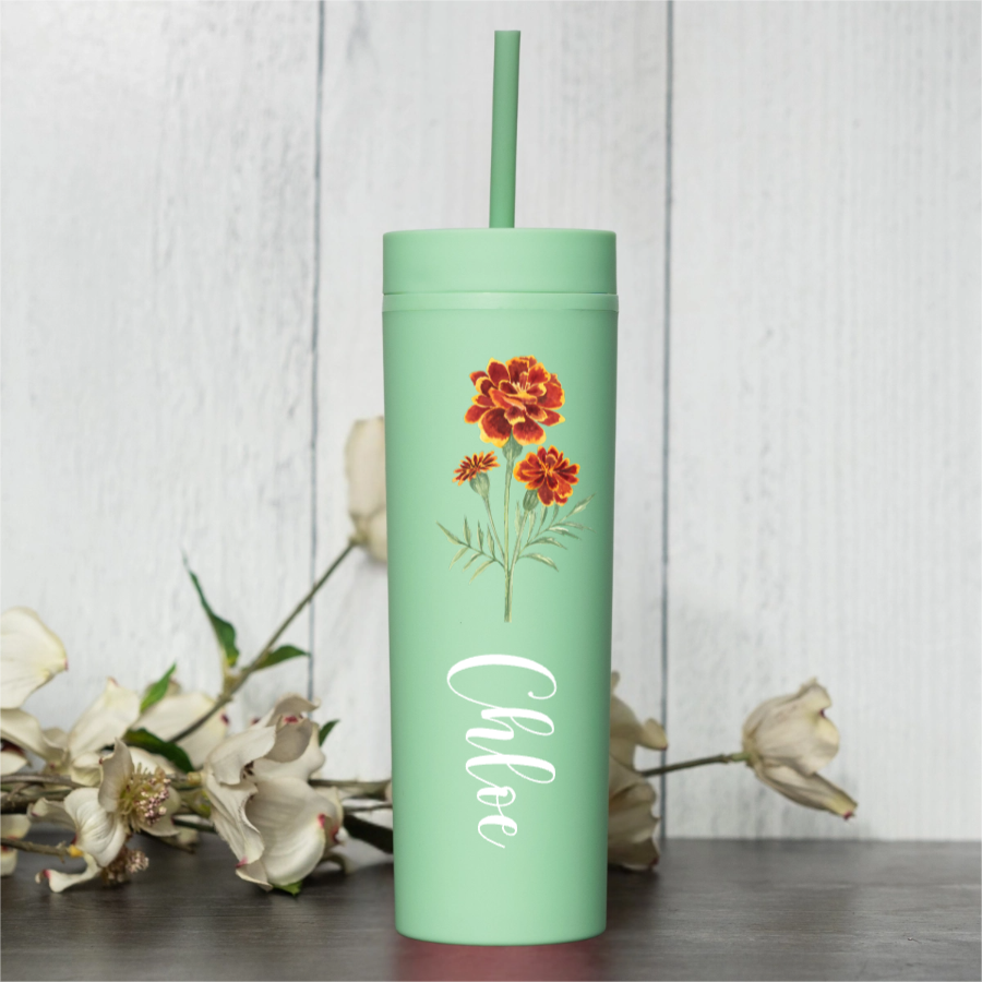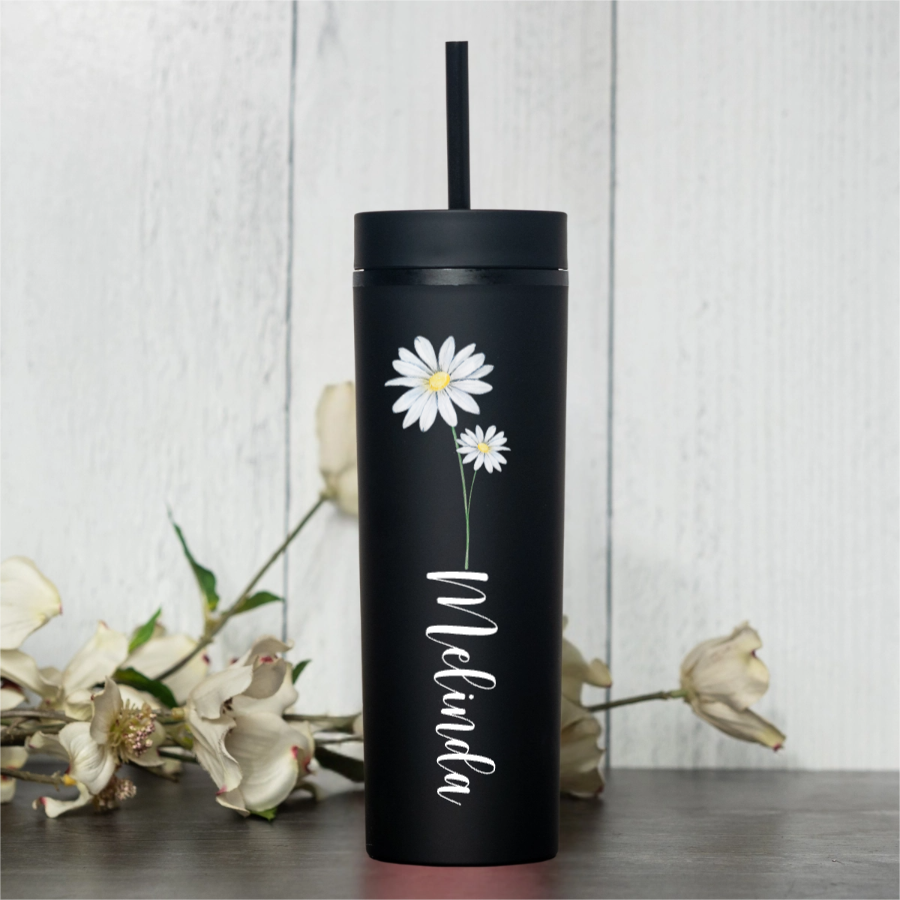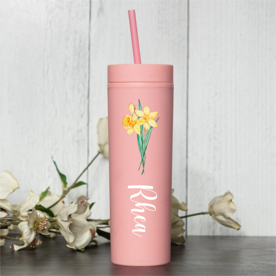 Stay stylish and hydrated with our 16oz Personalized Acrylic Tumbler! This custom flower tumbler is printed with your choice of flower design and any name you choose. It’s the perfect everyday cup for water, iced coffee, tea, or juice. Lightweight and durable, this reusable acrylic cup is great for home, school, work, or travel. It also makes a thoughtful birthday gift, teacher gift, or gift for her.
