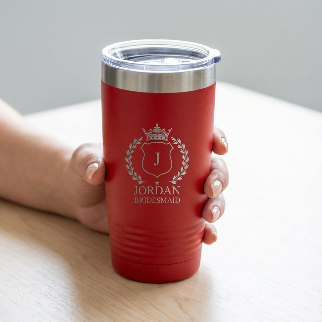 Celebrate your special day with this 20oz stainless steel tumbler, personalized with a custom bridal party design. Perfect as a gift for bridesmaids and groomsmen, this tumbler is both practical and meaningful. With its durable stainless steel construction, it keeps drinks hot for 8 hours or cold for 12, making it perfect for any occasion. The custom laser engraving ensures a personal touch that will be cherished for years to come.