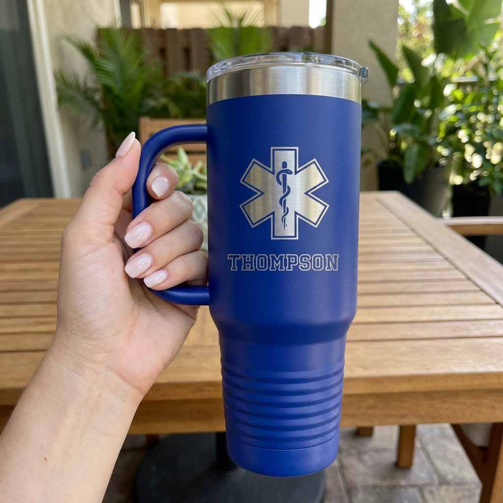 Made to keep up with long shifts and busy days, the large 40oz size helps keep drinks hot or cold for hours. The engraved design creates a clean, permanent look that will not fade or peel over time. Perfect for police officers, firefighters, EMTs, and paramedics, this tumbler makes a thoughtful gift or daily essential.