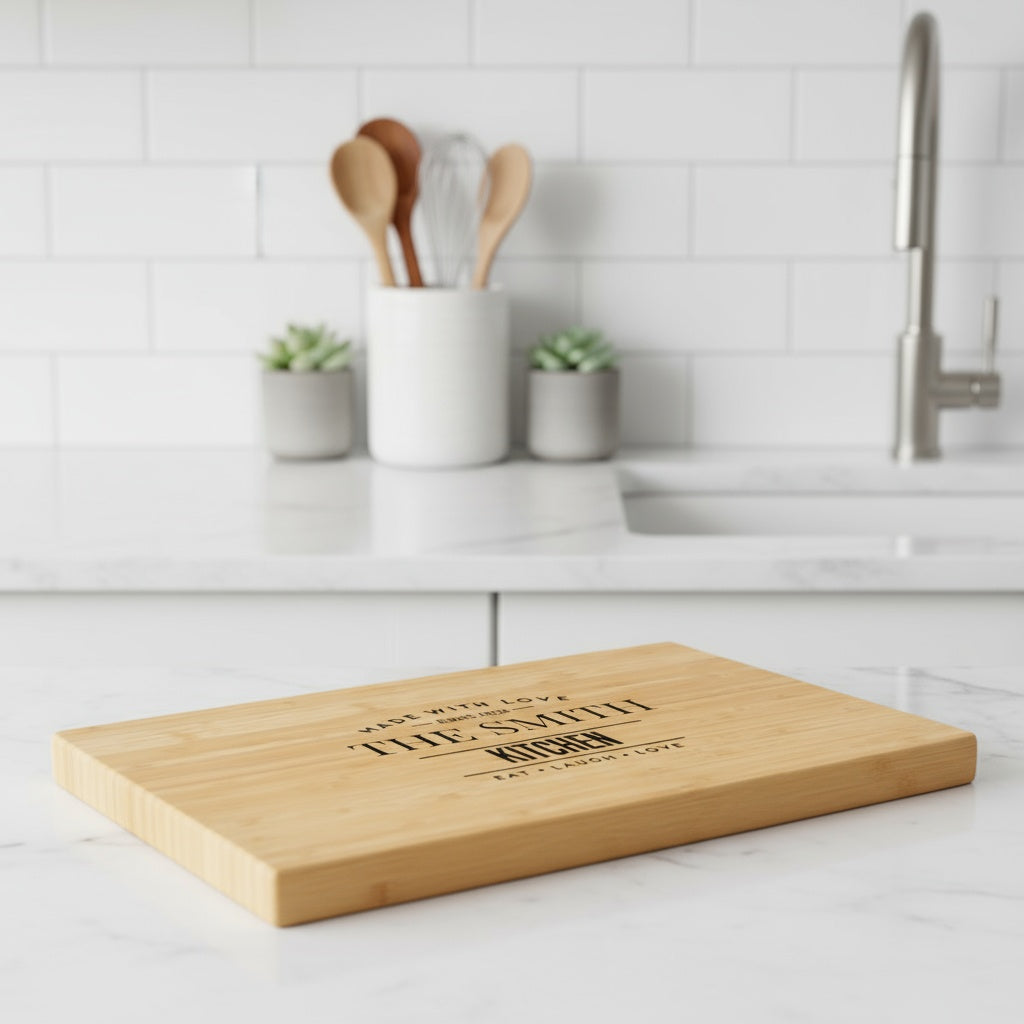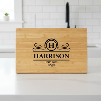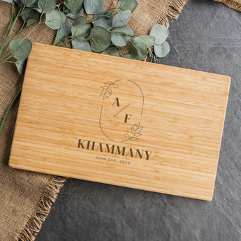 Refined and of unparalleled quality, our personalized 11x17 bamboo cutting boards make an exquisite gift for couples, housewarmings, weddings, anniversaries, and birthdays. Boasting unparalleled durability, bamboo is ideal for cutting boards; one side is delicately emblazoned for display, while the other is ready for kitchen use.