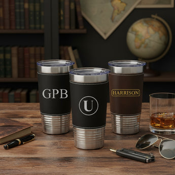 These personalized 20oz Stainless Steel Tumblers are wrapped in smooth, eco-friendly vegan leather, giving it a sleek, stylish look that’s perfect for any occasion. It keeps your drinks hot for up to 6 hours or cold for 12, making it ideal for daily use. The custom laser engraving lets you add a personal touch.