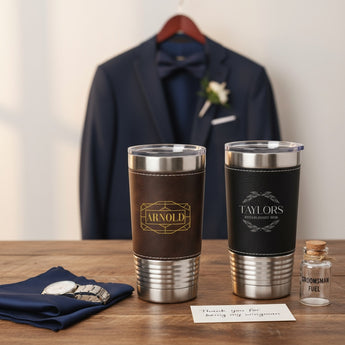 These personalized 20oz Stainless Steel Tumblers are wrapped in smooth, eco-friendly vegan leather, giving it a sleek, stylish look that’s perfect for any occasion. It keeps your drinks hot for up to 6 hours or cold for 12, making it ideal for daily use. The custom laser engraving lets you add a personal touch.