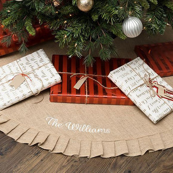 Add rustic charm to your Christmas tree with this beautiful burlap tree skirt! This natural, earthy skirt can be embroidered with your family name, creating a personalized holiday decoration you'll use year after year. It's perfect for farmhouse style, country decor, or anyone who loves cozy Christmas traditions!