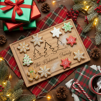 Bring holiday cheer to your kitchen with this beautiful dual-purpose cutting board! This versatile wooden board features one of our festive Christmas designs engraved on the surface. Use it for preparing holiday meals or create a stunning charcuterie display for your Christmas parties and gatherings.