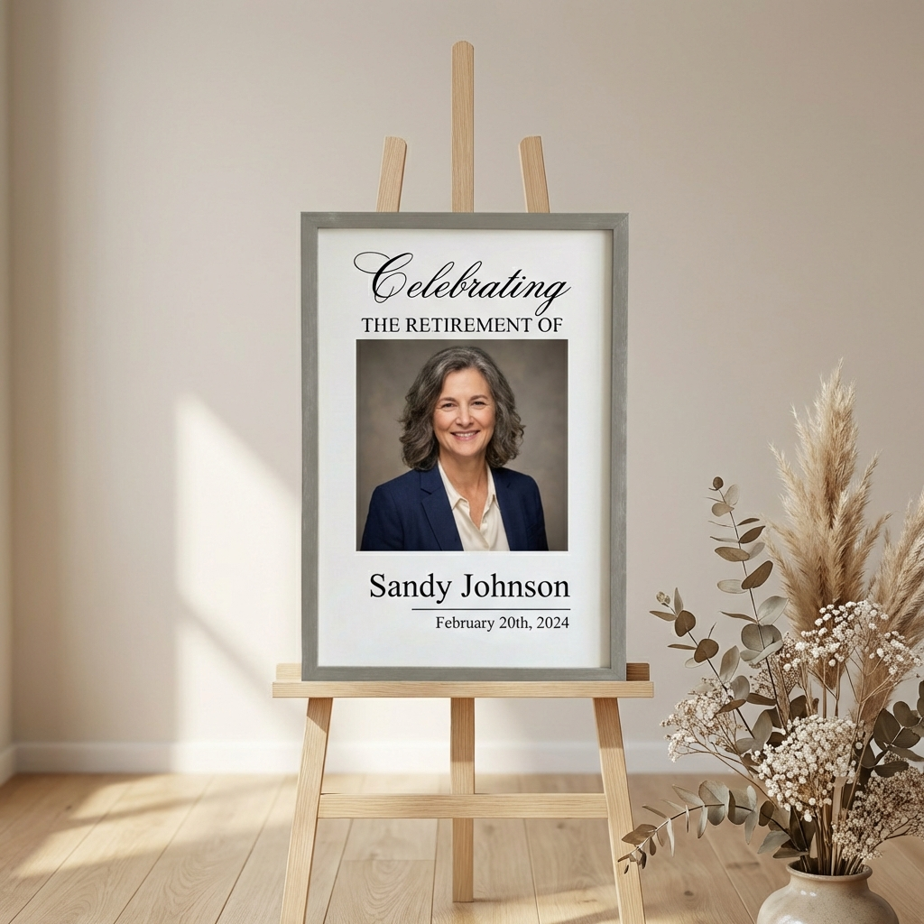 Honor a retirement, birthday, life, or celebration beautifully with this 16 x 24 inch framed sign. Designed to display cherished memories and meaningful words, this sign is perfect for parties, gatherings, or home remembrance. Its clean layout and elegant style create a warm, comforting focal point for any space.
