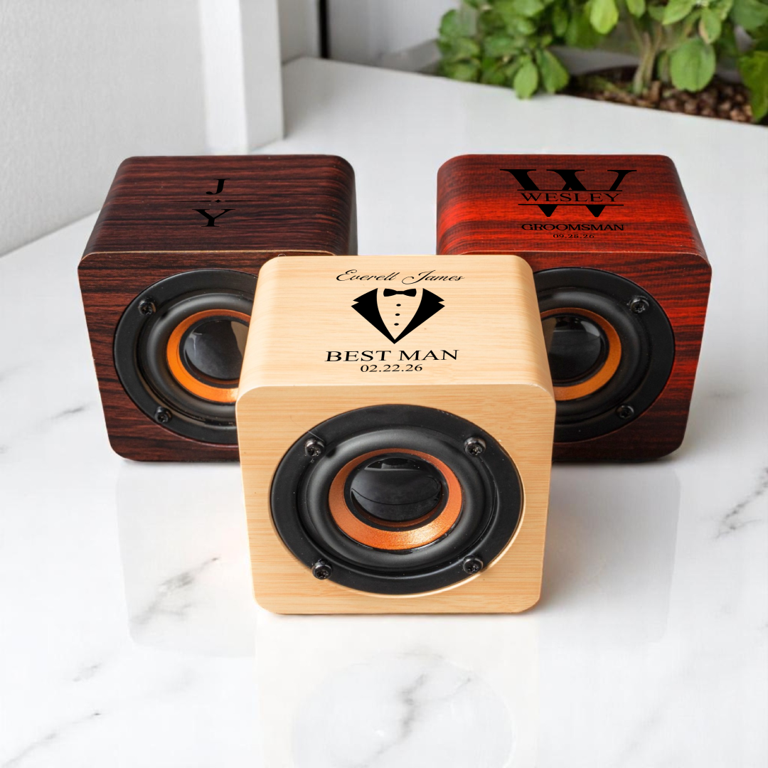 Give your groomsmen a gift they’ll actually use and love! Our custom mini Bluetooth speaker is professionally printed with one of our exclusive groomsmen or best man designs, making it the perfect thank-you gift for your wedding party. Small in size but big in sound, this speaker is great for home, travel, bachelor parties, and everyday use.