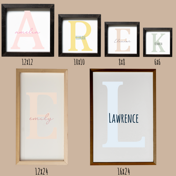 Add a special touch to your child’s room with this custom name sign. Each piece is designed with a large initial and personalized name, making it a unique and meaningful decoration for nurseries, playrooms, or bedrooms.