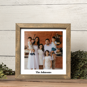 Turn your favorite memories into timeless wall art with our square framed wood photo print. Simply upload your picture, add optional text at the bottom, and choose your preferred font for a personalized touch. Each piece is printed directly onto high-quality wood with a rustic black frame, making it a beautiful keepsake for your home or a thoughtful gift for loved ones.