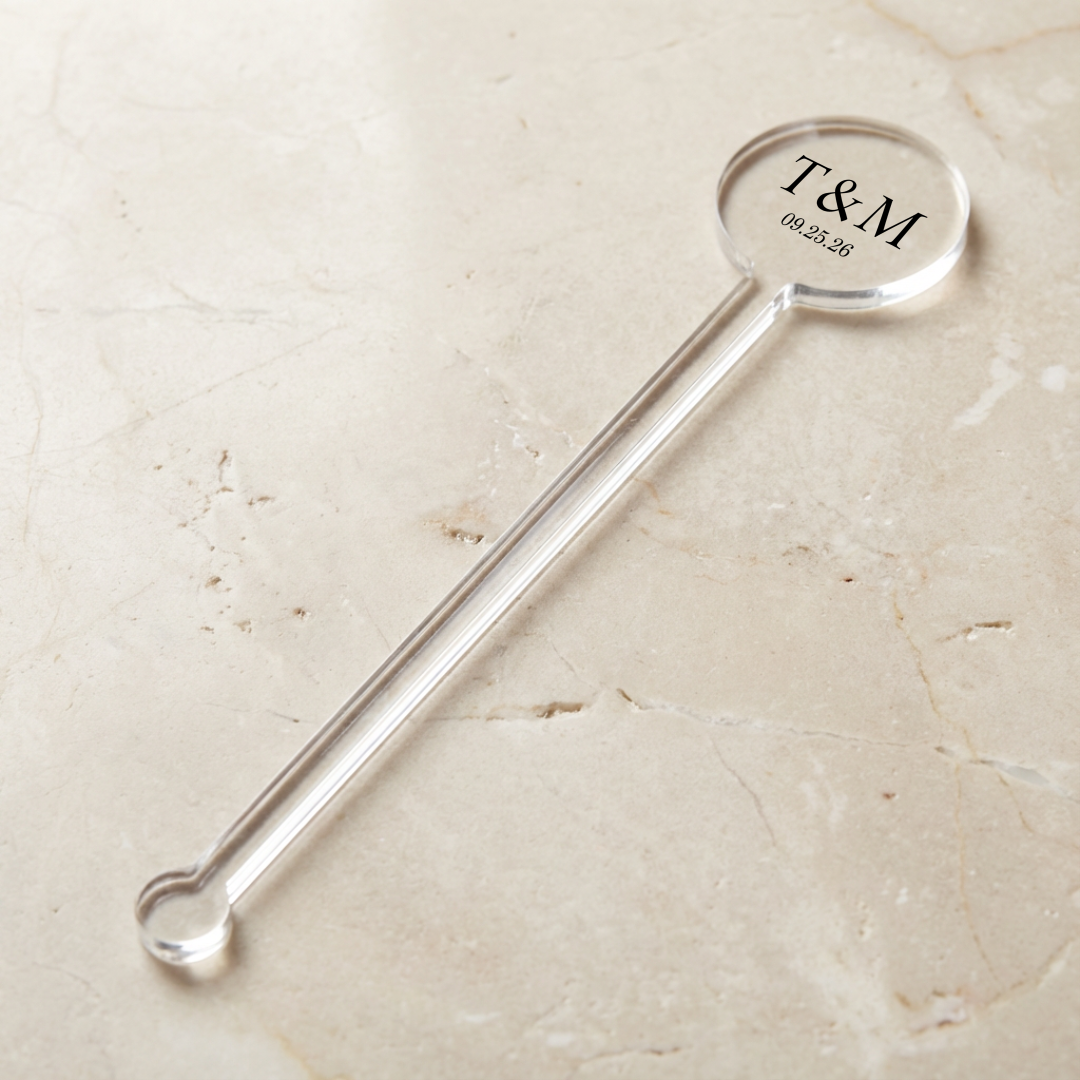Add a stylish touch to your celebration with these custom acrylic stir sticks, printed with one of our beautiful wedding designs. Perfect for cocktails, signature drinks, coffee, or mocktails, these stir sticks make a simple detail feel extra special.