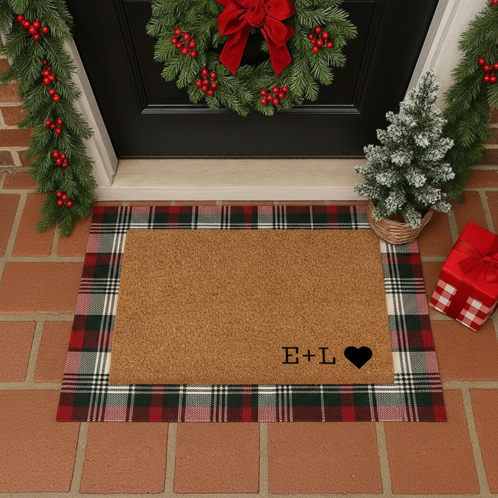 Our beautiful initials and heart door mat celebrates your relationship in a simple, elegant way. The clean design with two letters and heart symbol creates a timeless look that works with any home style. Perfect for announcing your couple status to guests and neighbors.