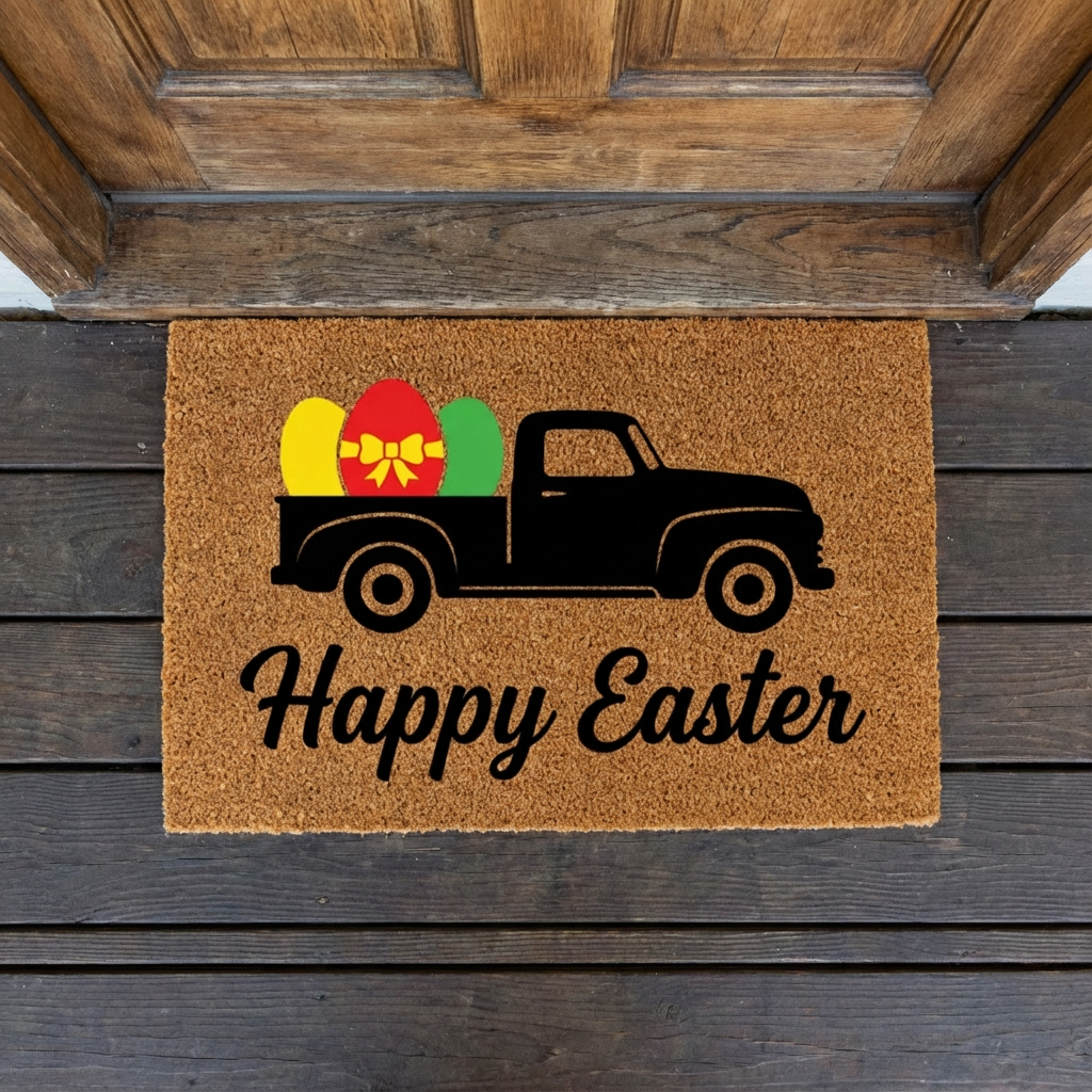 Welcome spring with this cheerful Easter themed doormat. Choose from a variety of Easter designs featuring bunnies, eggs, flowers, and festive spring colors. It’s a fun and easy way to decorate your front door for the season.