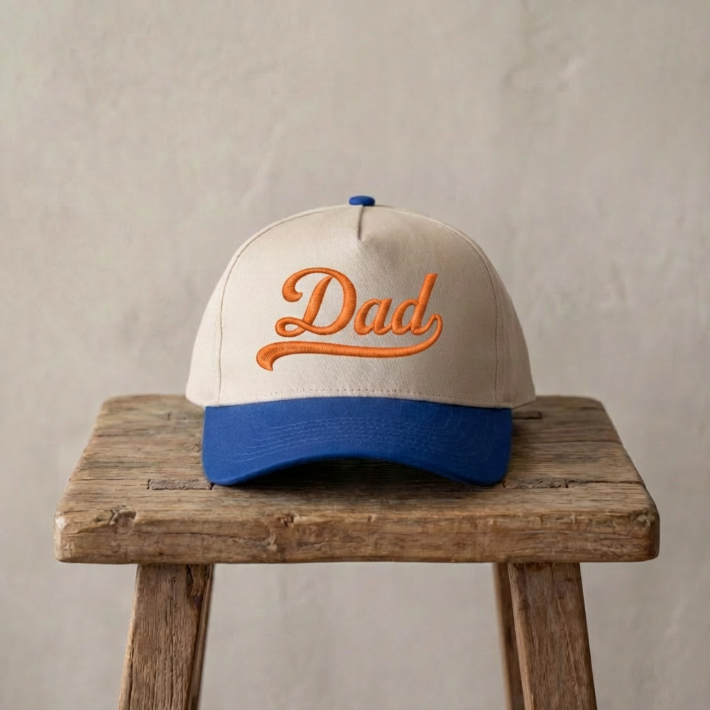 - Embroidered dad design for a clean, stylish look