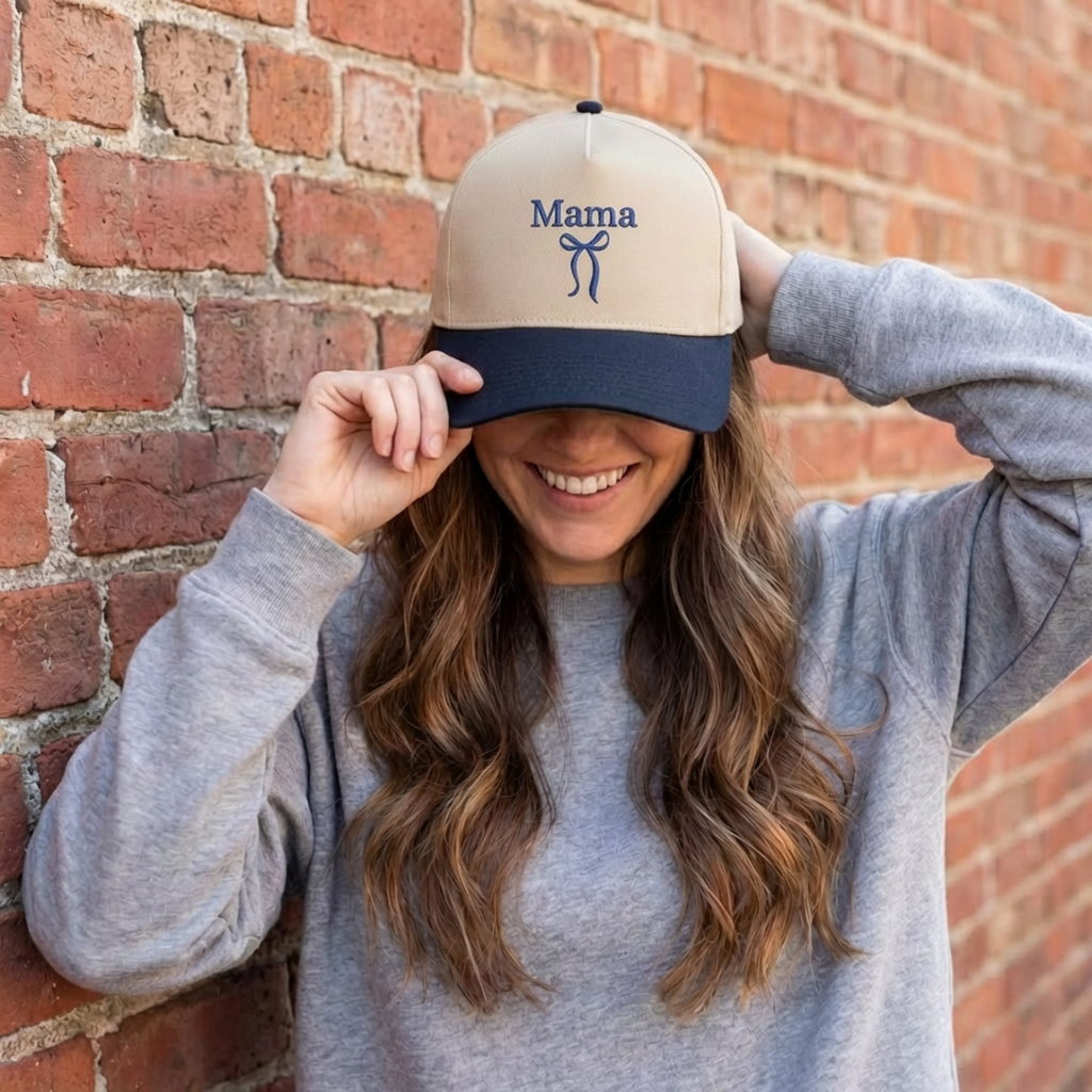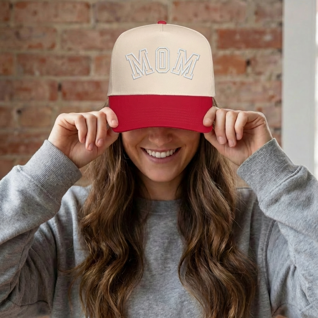 Top off your look with this cute and comfy embroidered canvas trucker hat made just for moms. It’s perfect for busy days, school runs, or just keeping it casual in style.