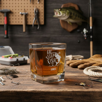 This heavy-duty square glass feels great in your hand and looks impressive on any bar cart or table. The permanent engraving won't fade, peel, or wash away no matter how many times you use it. Choose from our collection of fishing-themed designs to match your style.