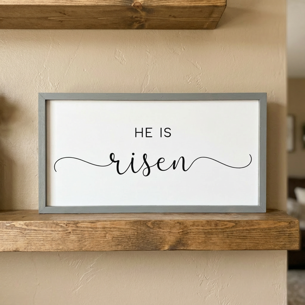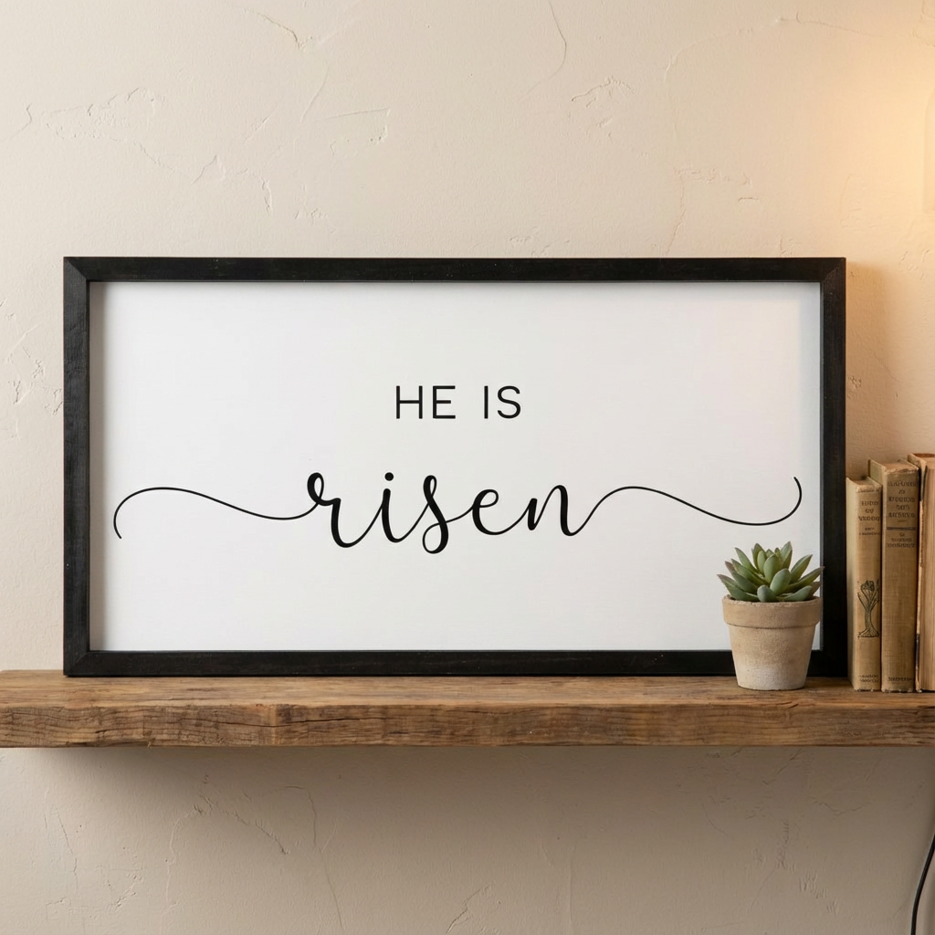 Celebrate the joy of Easter with this beautiful wood framed sign that says “He Is Risen.” This faith-filled piece is a meaningful reminder of hope, renewal, and the resurrection. Its simple, timeless design makes it perfect for Easter decor and year-round display.