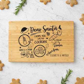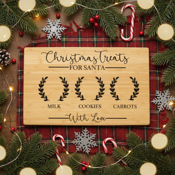 Make Christmas Eve magical with this special personalized cutting board! This unique board features our interactive Christmas design where kids can leave cookies and milk for Santa. It's engraved with a fun Santa scene that makes leaving treats extra special and exciting for children.