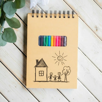 Turn your child's artwork into something truly special with this personalized sketch pad! This creative set includes a wooden sketch pad engraved with your child's own drawing on the cover, plus colored pencils for endless artistic fun. It's a magical way to celebrate young artists and encourage their creativity!
