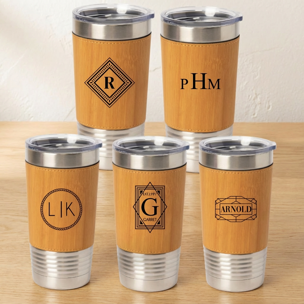 Gift Set of 5 Leather Wrapped Stainless Tumblers - Signature Designs