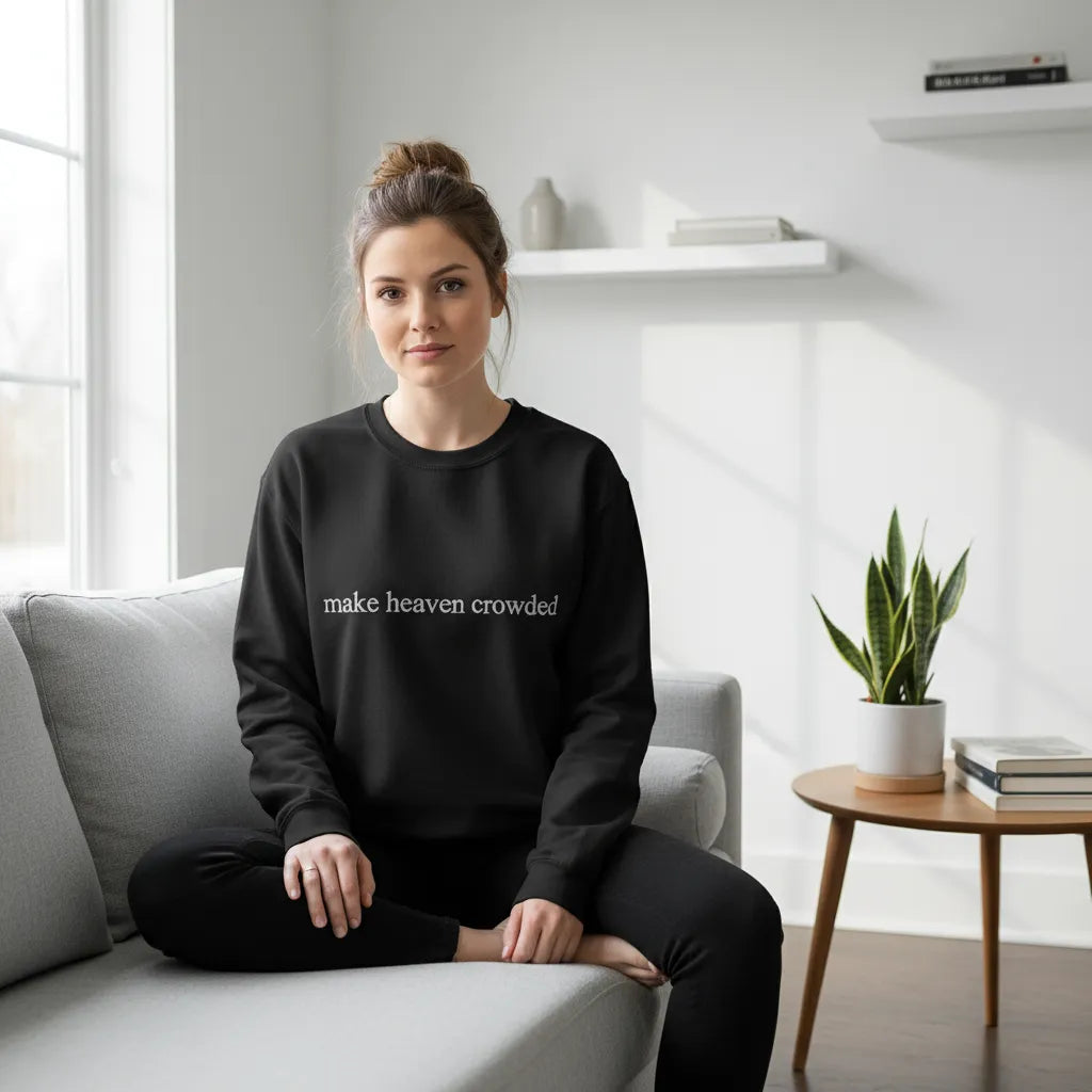 Share your faith and inspiring message with our "Make Heaven Crowded" crewneck sweatshirt! This meaningful Christian-inspired sweatshirt features a simple but powerful message that reminds everyone of our purpose to spread love and bring others to faith.