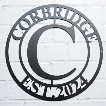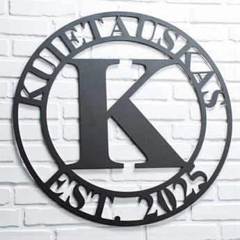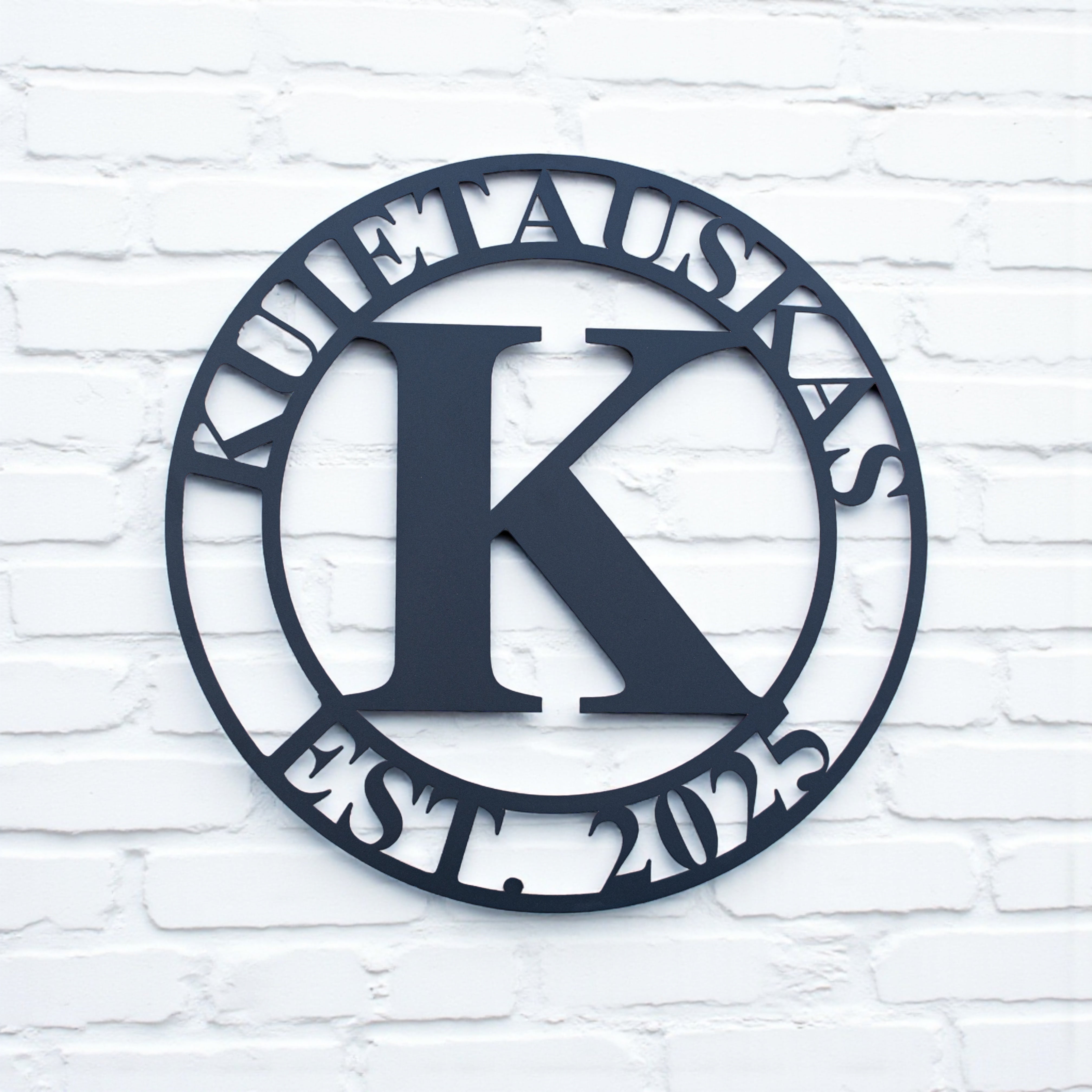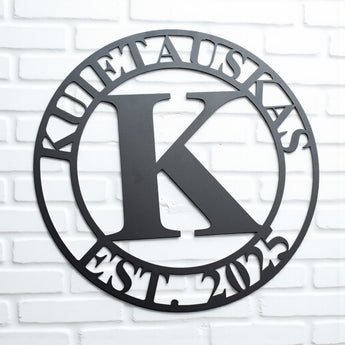 Show off your family pride with this elegant custom metal sign! This classic wall art displays your family name, initial, and special date in a beautiful design. Personalize it with your wedding date, anniversary, or the year your family started.