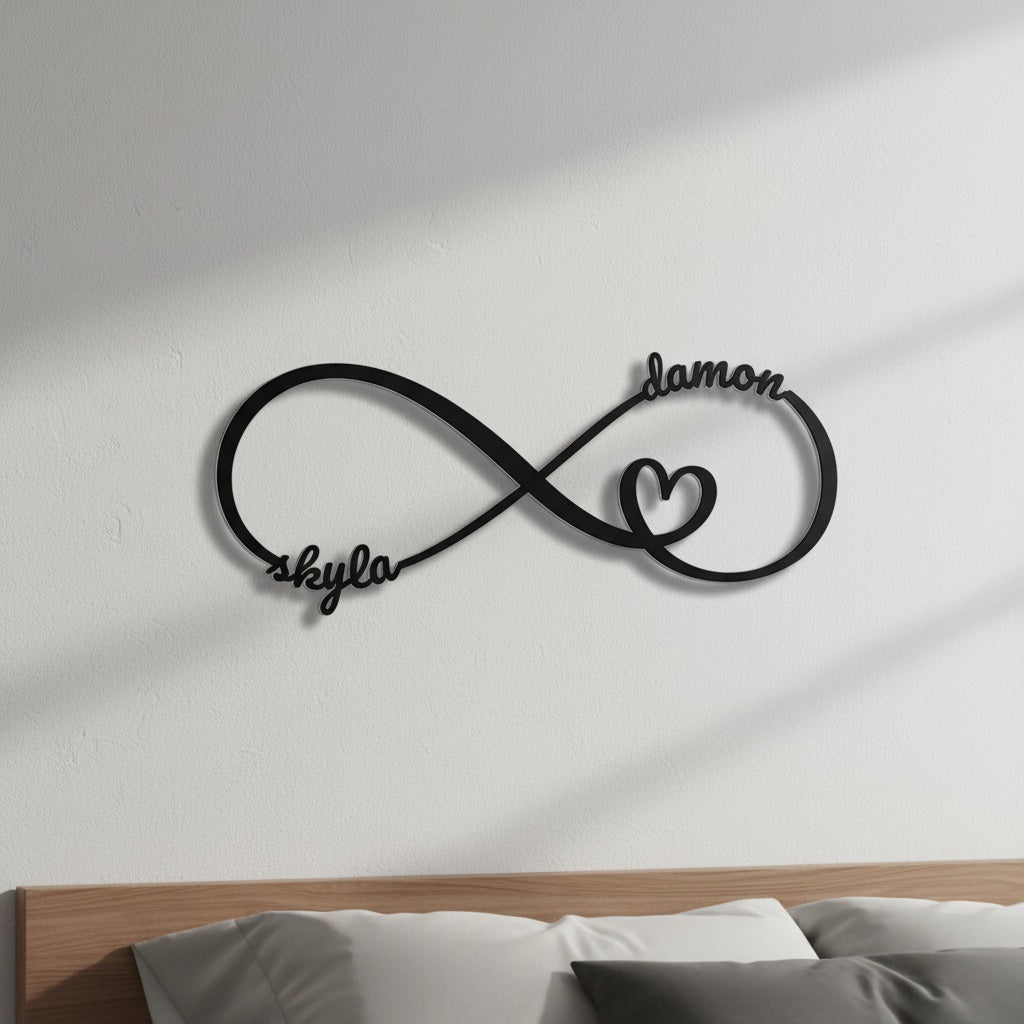 Made from durable metal, this sign looks elegant and modern in any room. The infinity shape represents endless love, making it ideal for couples, best friends, or family members. Your custom names are incorporated into the design, creating a unique piece of art that's meaningful and personal.