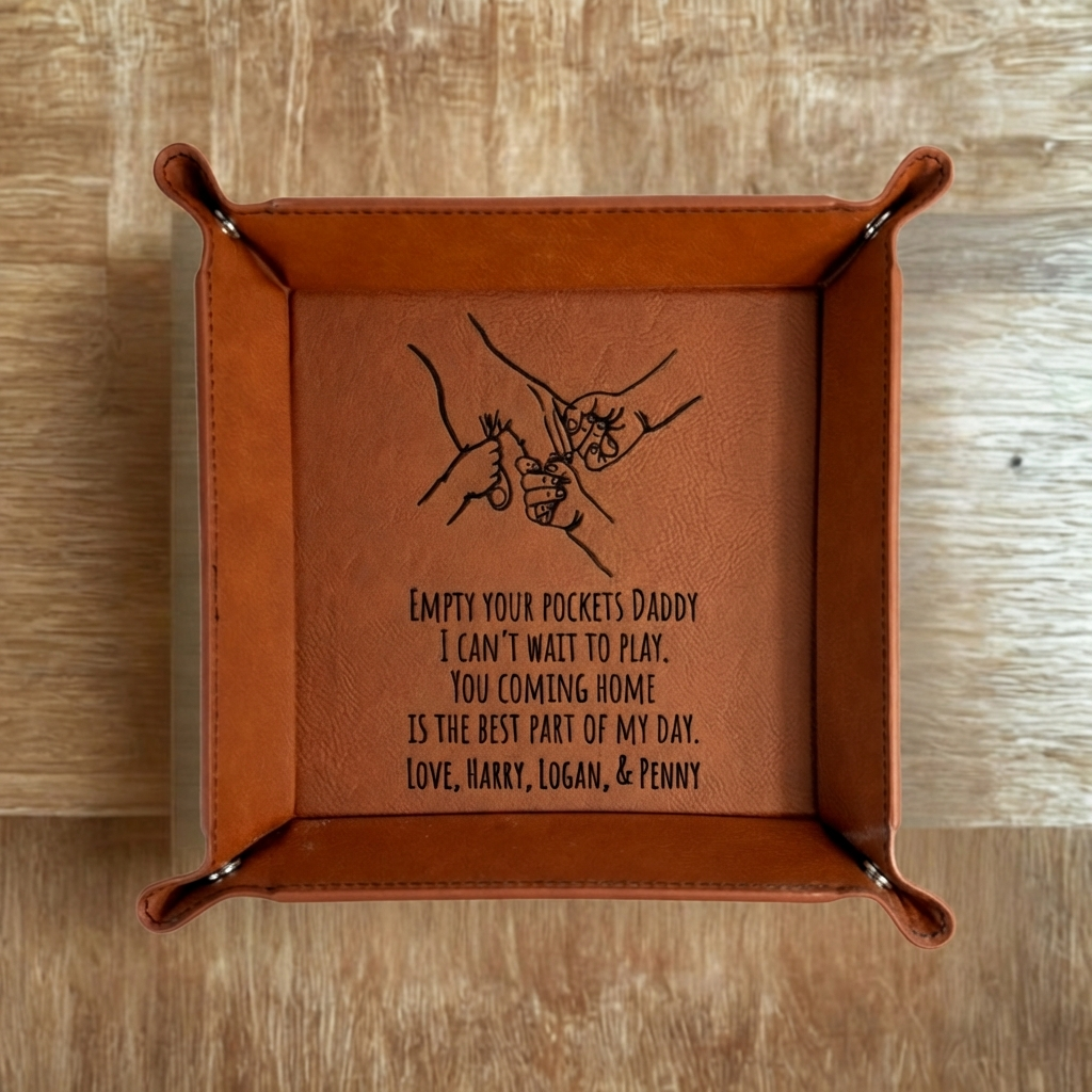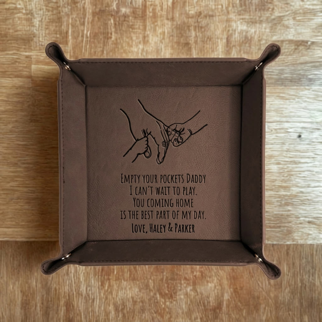 Designed for both function and style, this valet tray helps keep nightstands, desks, and dressers clean and organized. Its compact size fits easily anywhere, while the custom personalization makes it a thoughtful and practical Father’s Day gift.