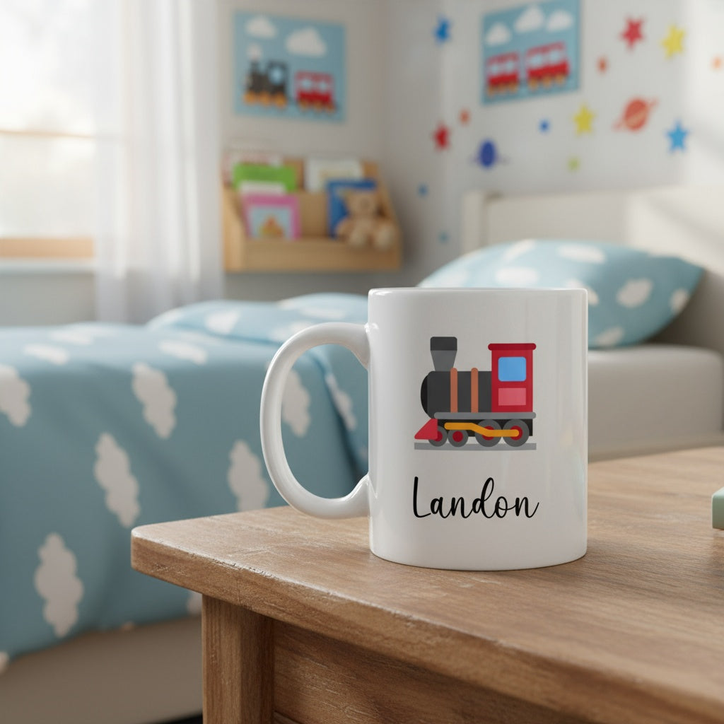 Made from high-quality ceramic, this mug is perfect for milk, hot chocolate, juice, or water. The bright, colorful transportation designs won't fade with washing. Kids will love drinking from a cup that shows their favorite vehicles and their name!