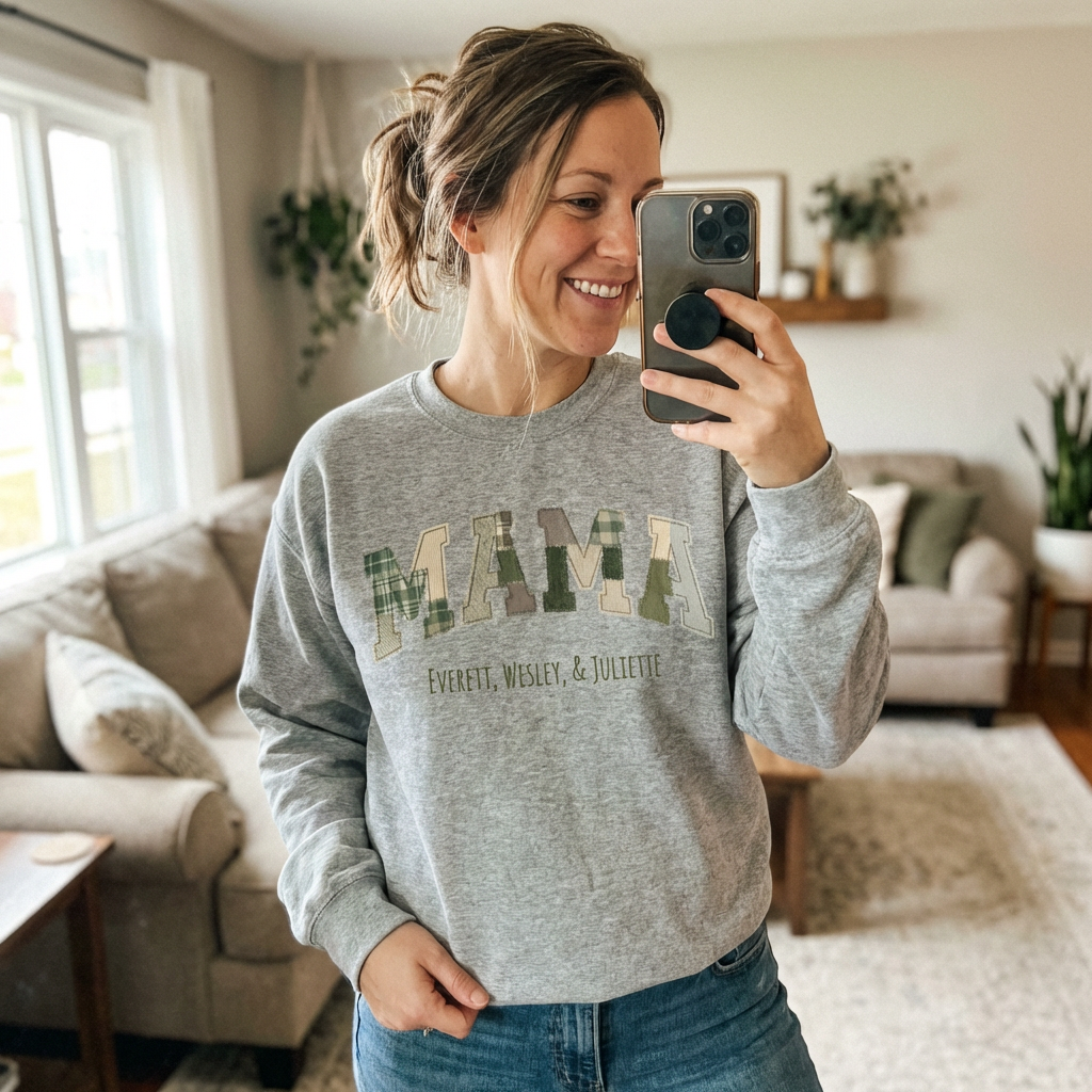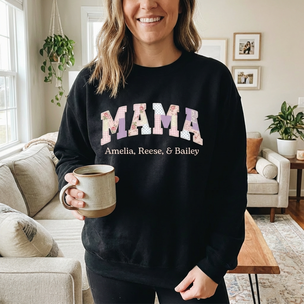 Personalized Design: Patchwork “MAMA” print with your kids’ names underneath