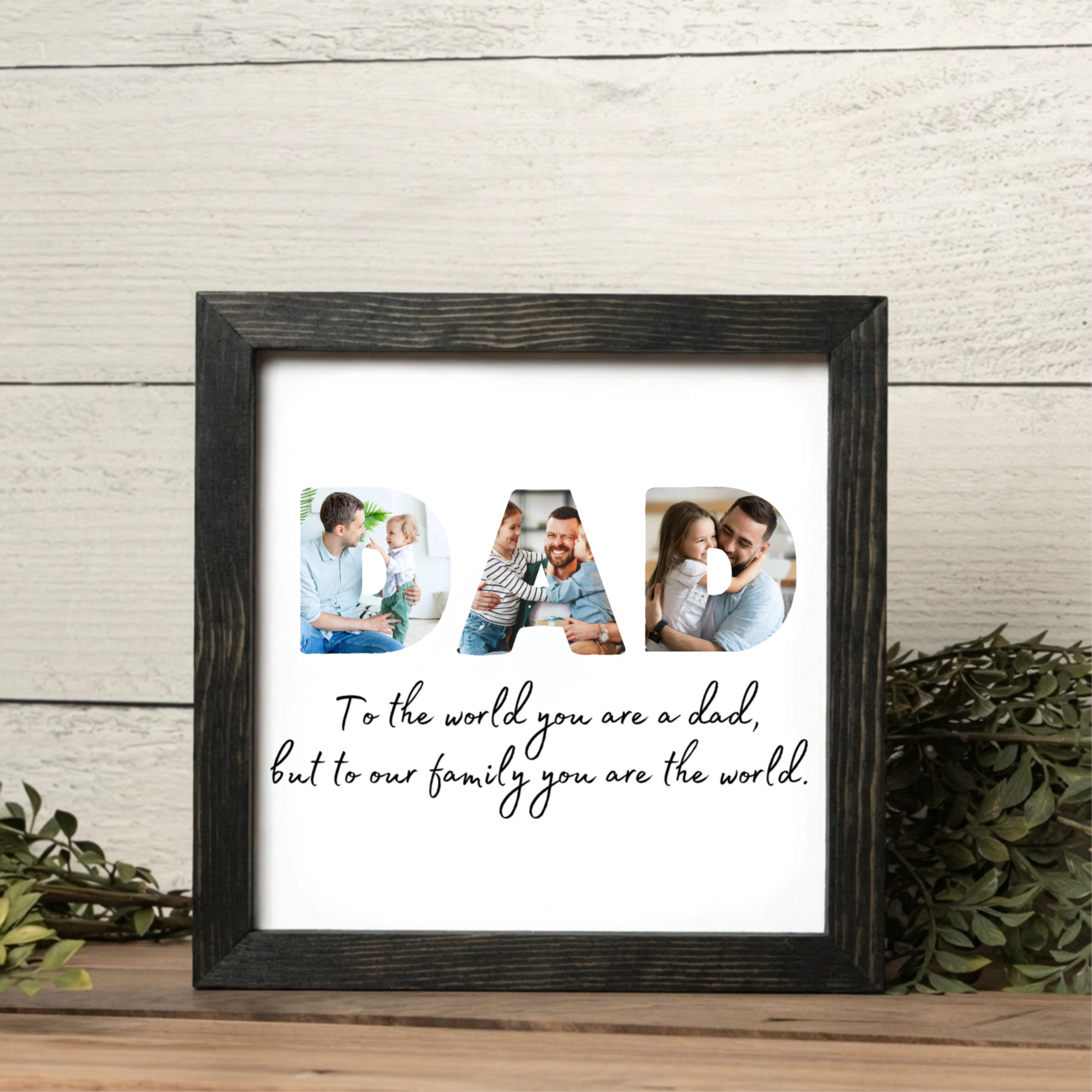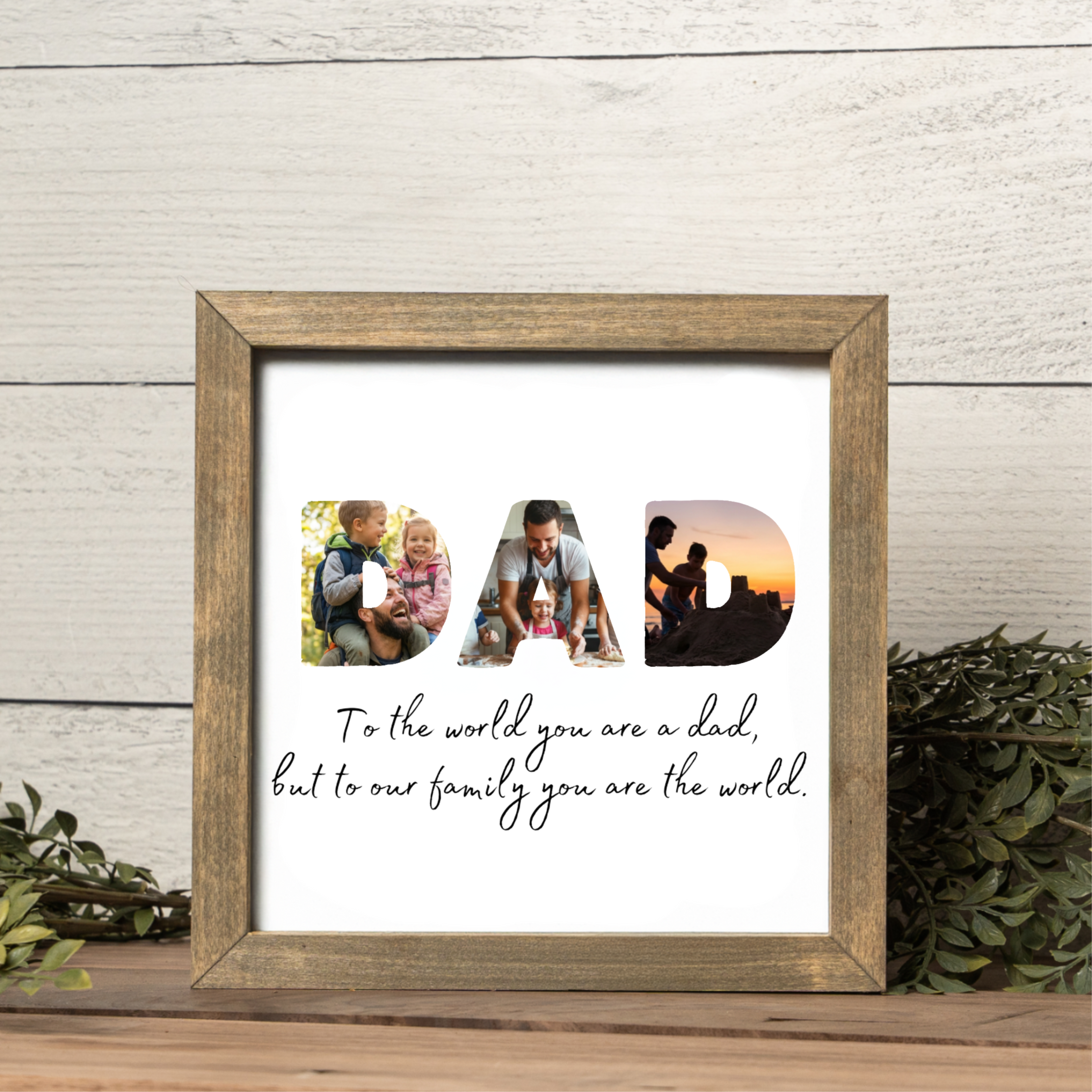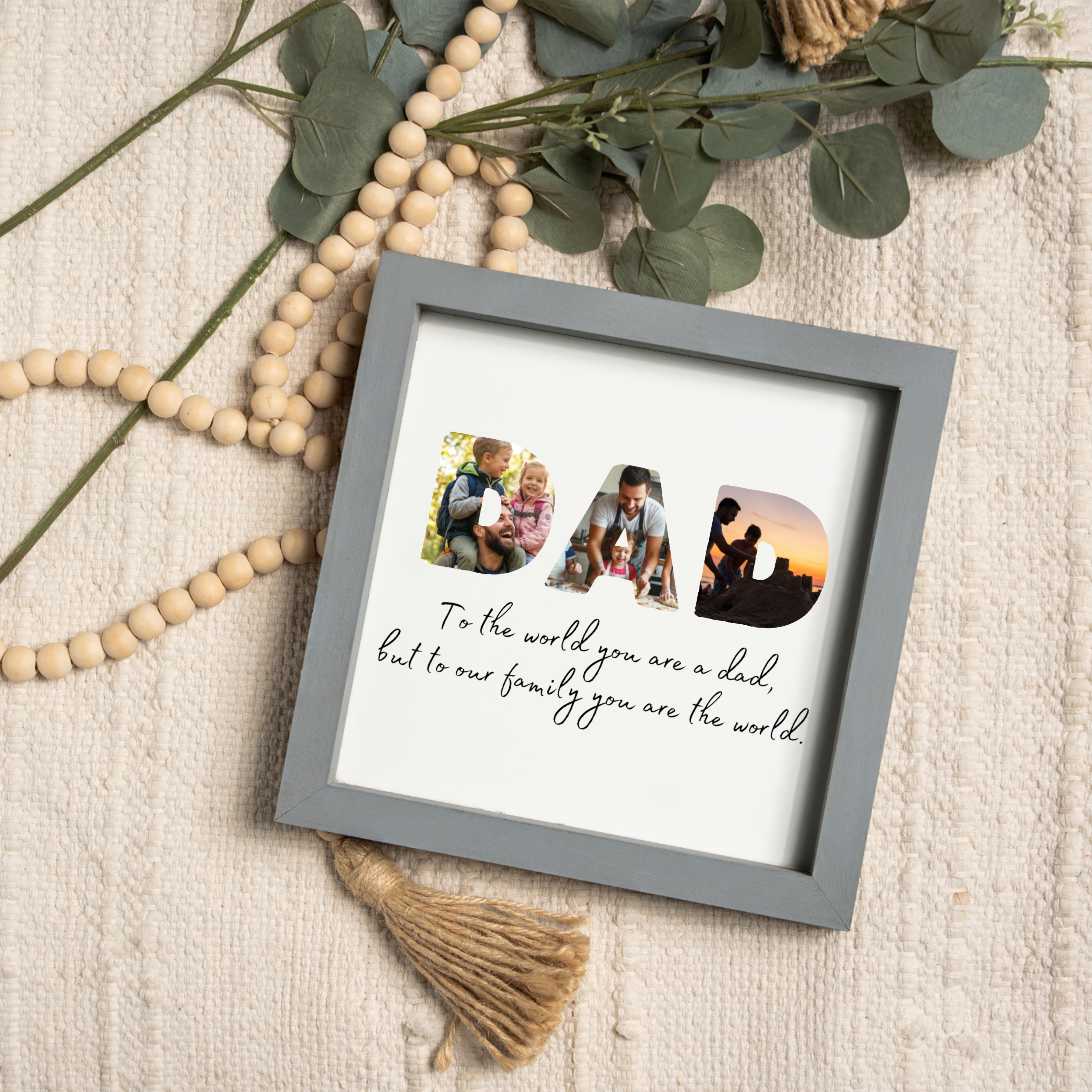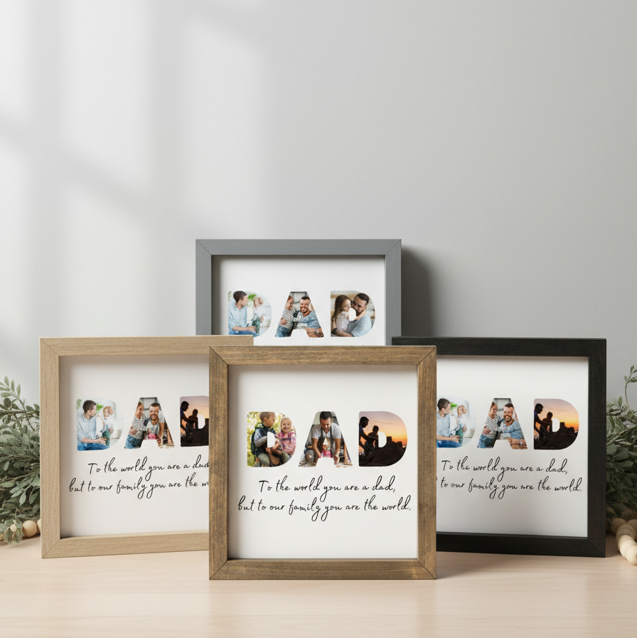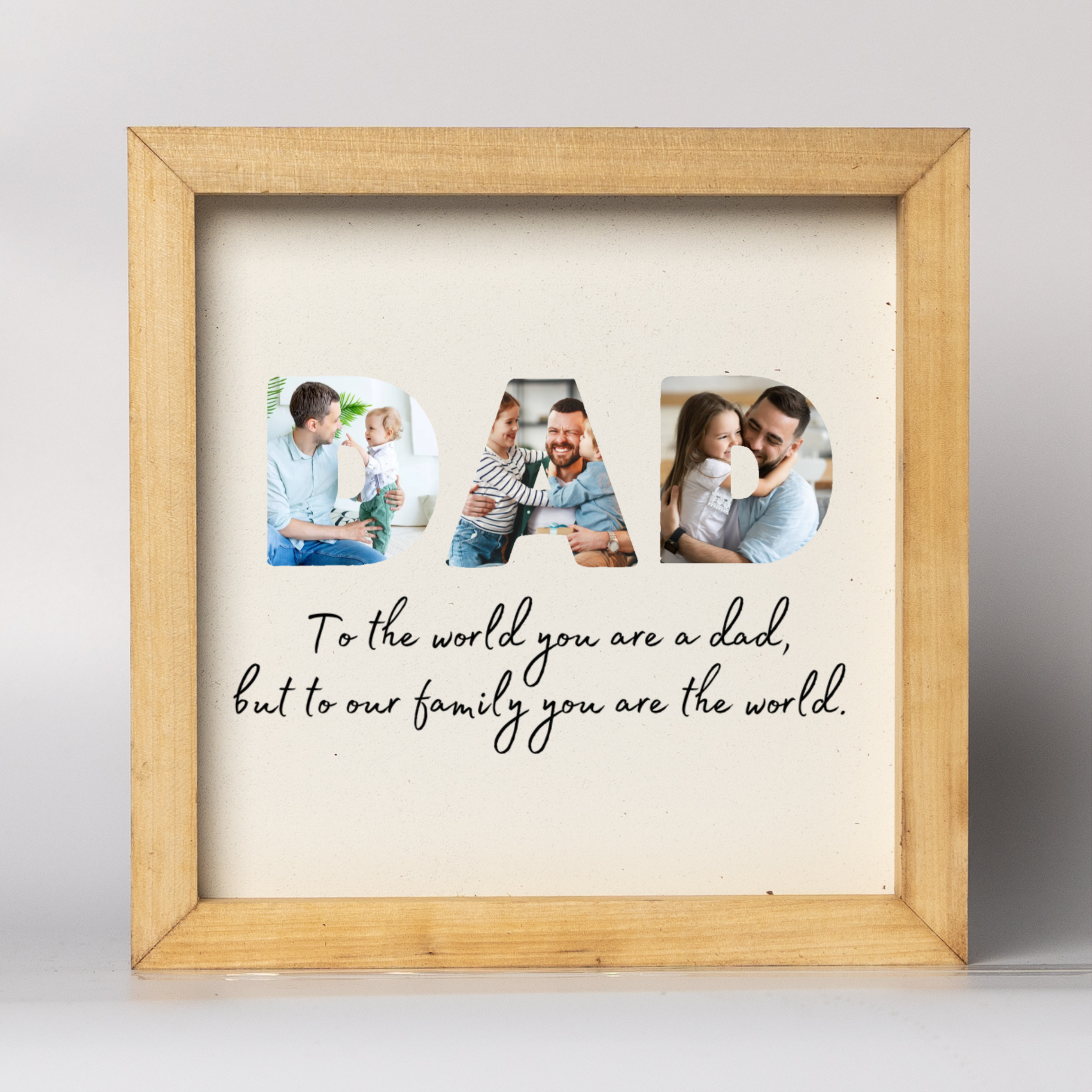 Perfect for Father’s Day, birthdays, or just because, this framed sign adds a personal touch to any home or office. The clean design and quality frame make it easy to display on a wall or shelf. Each sign is made with care to ensure clear photos and a polished finish.