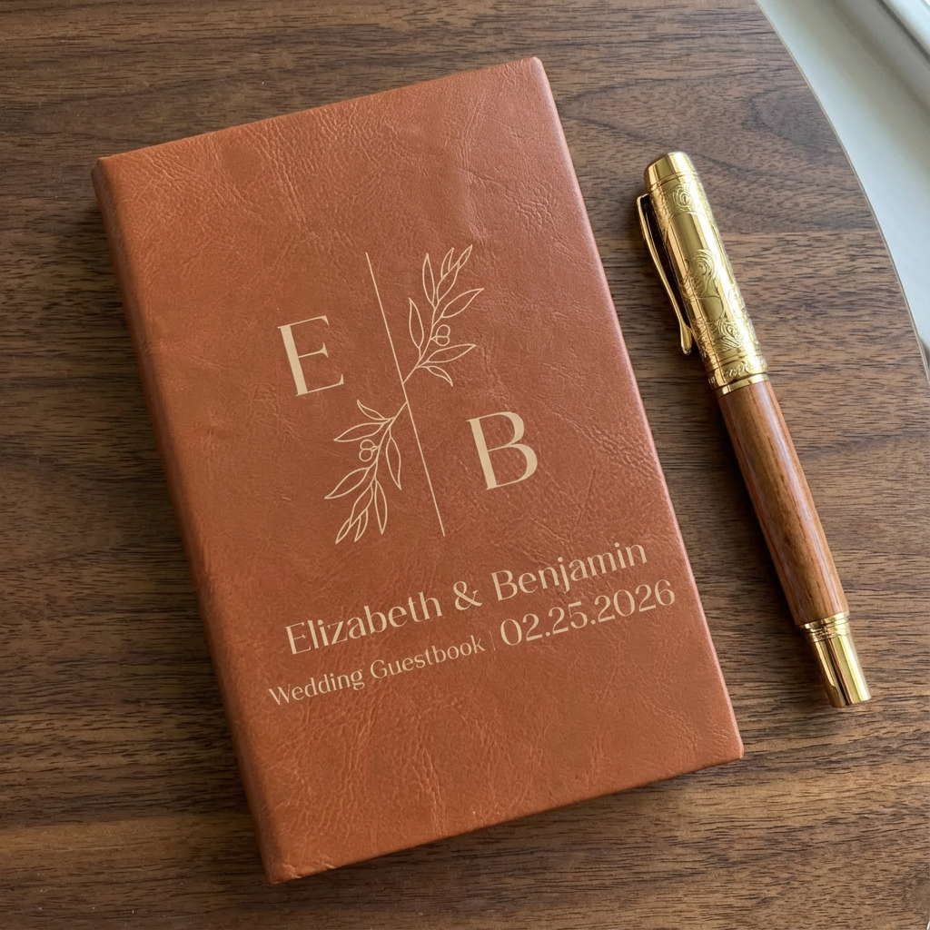 Capture every kind word, smile, and memory from your special day with this custom wedding guestbook journal. Designed to be both beautiful and meaningful, this guestbook is personalized just for you, making it a keepsake you’ll treasure forever. Guests can leave notes, advice, and well wishes that you can read for years to come.