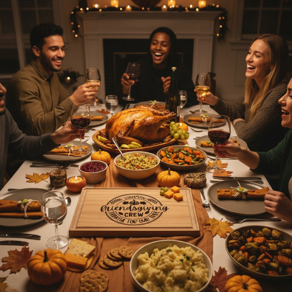 - Festive Friendsgiving design - Choose from our custom engraved holiday designs