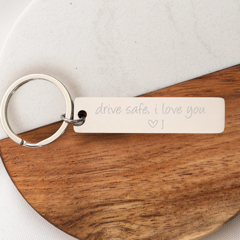 Our romantic drive safe keychain combines a heartfelt message with personal touch through custom initial engraving. Every time they grab their keys, they'll be reminded of your love and care. Perfect for new drivers, daily commuters, or anyone who travels frequently.