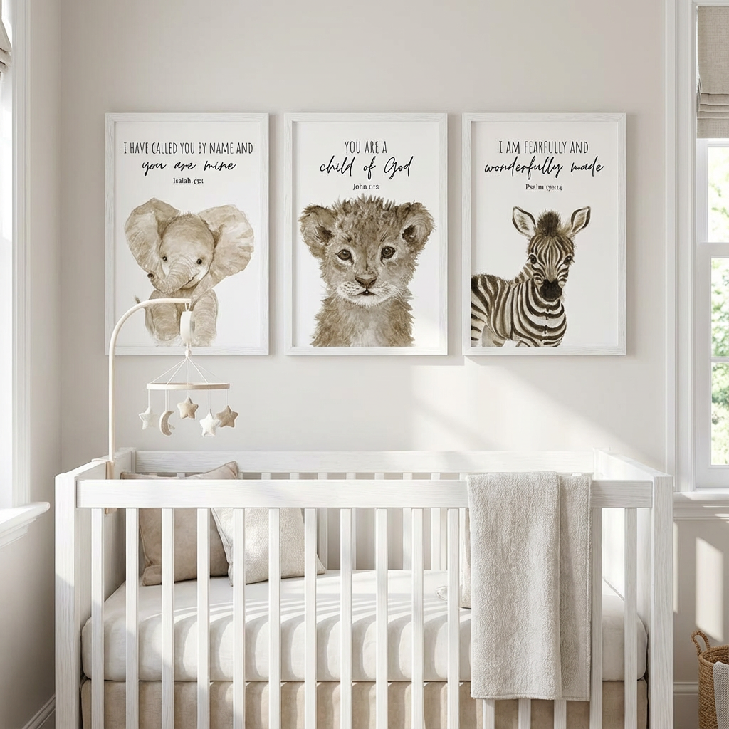 Create a peaceful and loving space with this 16x32in framed print featuring a sweet watercolor animal and an uplifting Bible verse. Designed for kids’ nurseries and children’s rooms, this artwork adds faith, comfort, and charm to your home.