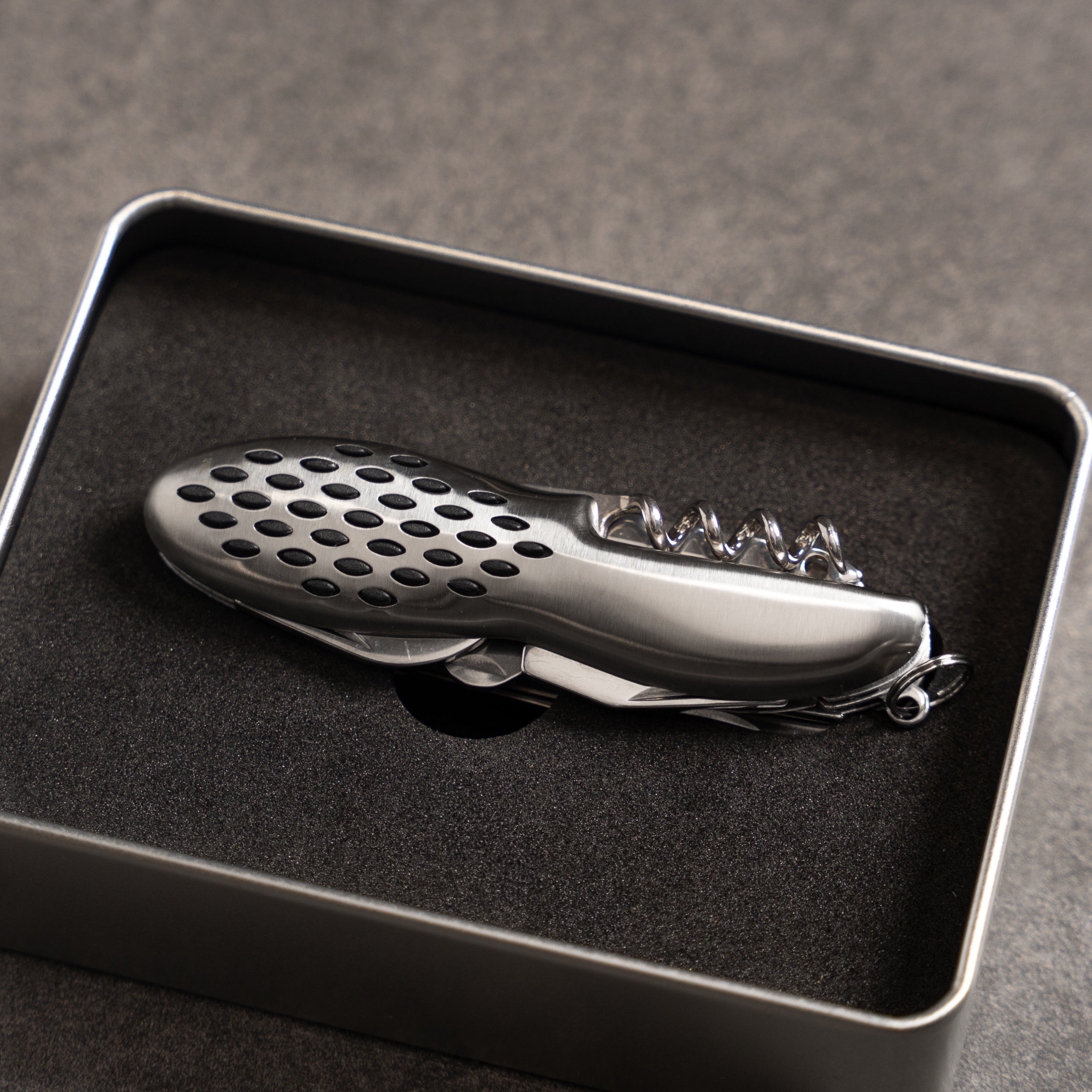Get the perfect multi-tool with this premium Swiss Army knife. Comes in a protective tin box and can be custom engraved with your name right on the knife.
