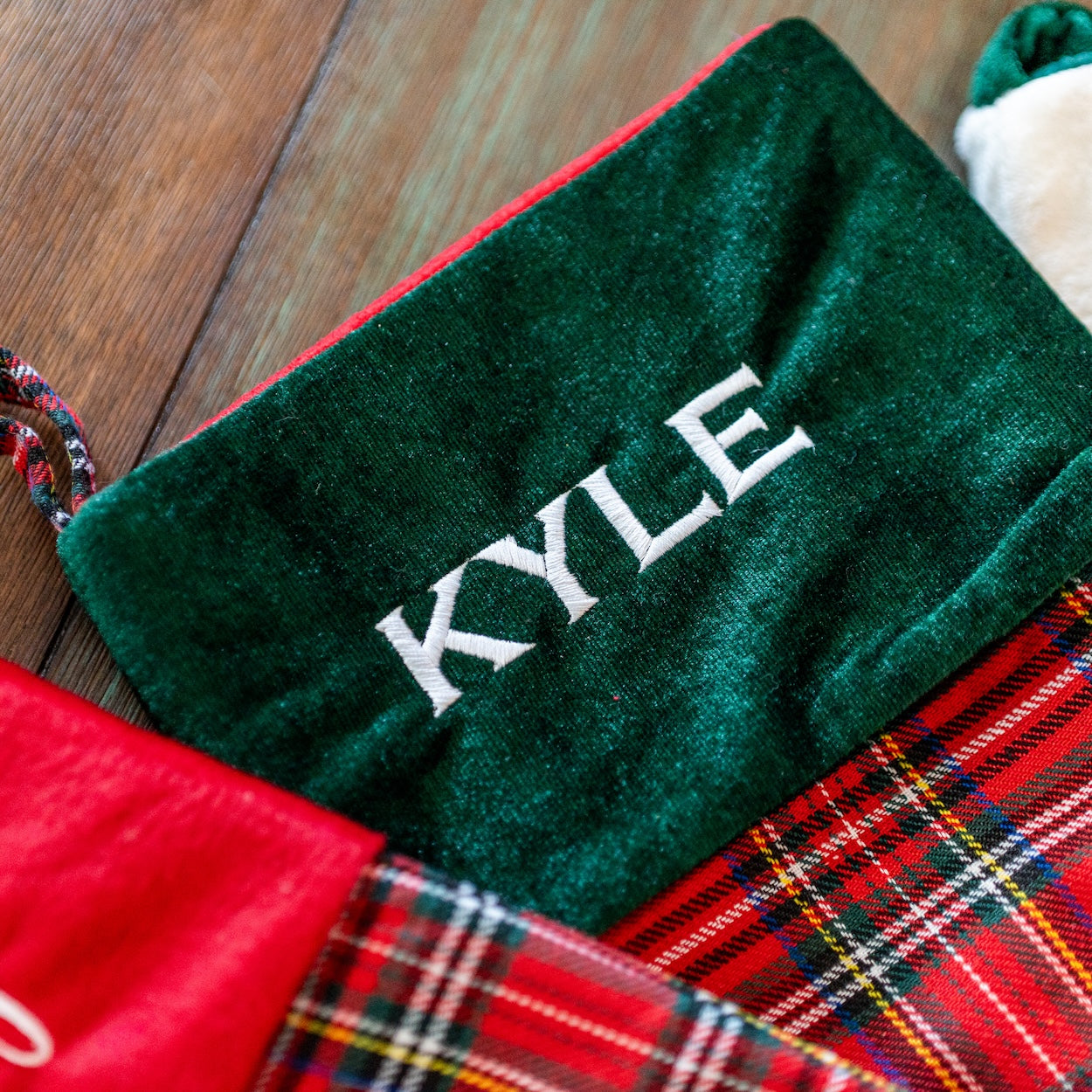 Add luxury to your Christmas with this gorgeous velvet Christmas stocking! Choose from rich red or deep green velvet, each with your family member's name beautifully embroidered on the soft cuff.