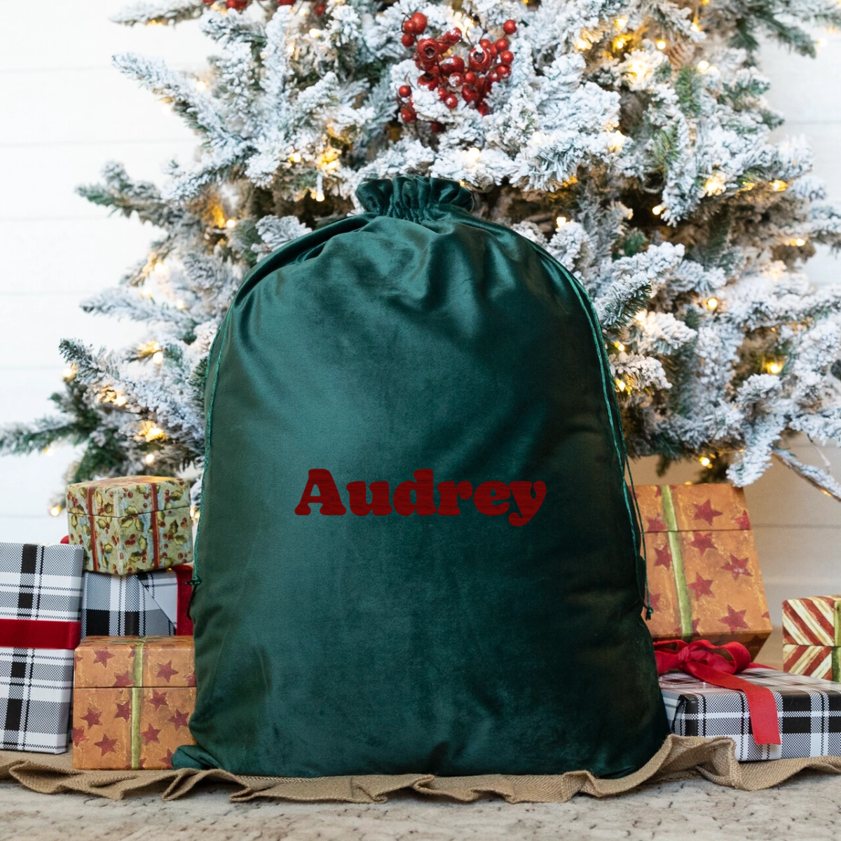 Make Christmas extra magical with this luxurious velvet Santa bag personalized with your name! Available in classic Christmas red or festive green, this custom embroidered Santa sack brings holiday joy and creates lasting memories for the whole family.