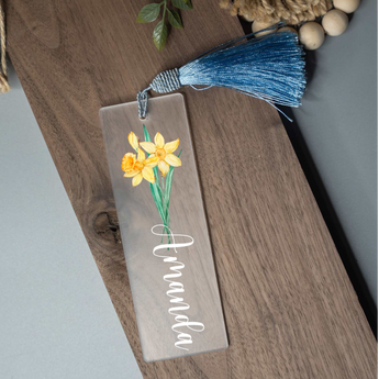Mark your place in style with our personalized acrylic birth flower bookmark. Each bookmark is customized with your name and choice of flower, making it a meaningful keepsake or gift. Perfect for book lovers, teachers, students, or anyone who treasures a special touch when reading. The tassel adds a finishing detail that makes it as beautiful as it is functional.