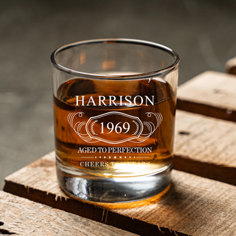 Perfect for birthdays, retirement parties, or any milestone celebration. This personalized whiskey glass makes every sip special and shows off how well you've aged over the years. Great for toasting to another year of wisdom and experience!