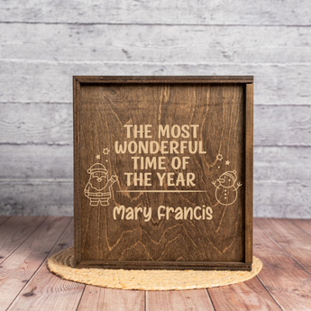 Make Christmas extra special with this beautiful engraved wooden gift box. Perfect for holding keepsakes, pajamas, or holiday surprises. Each box is customized with your chosen name or message to create a treasured holiday tradition.